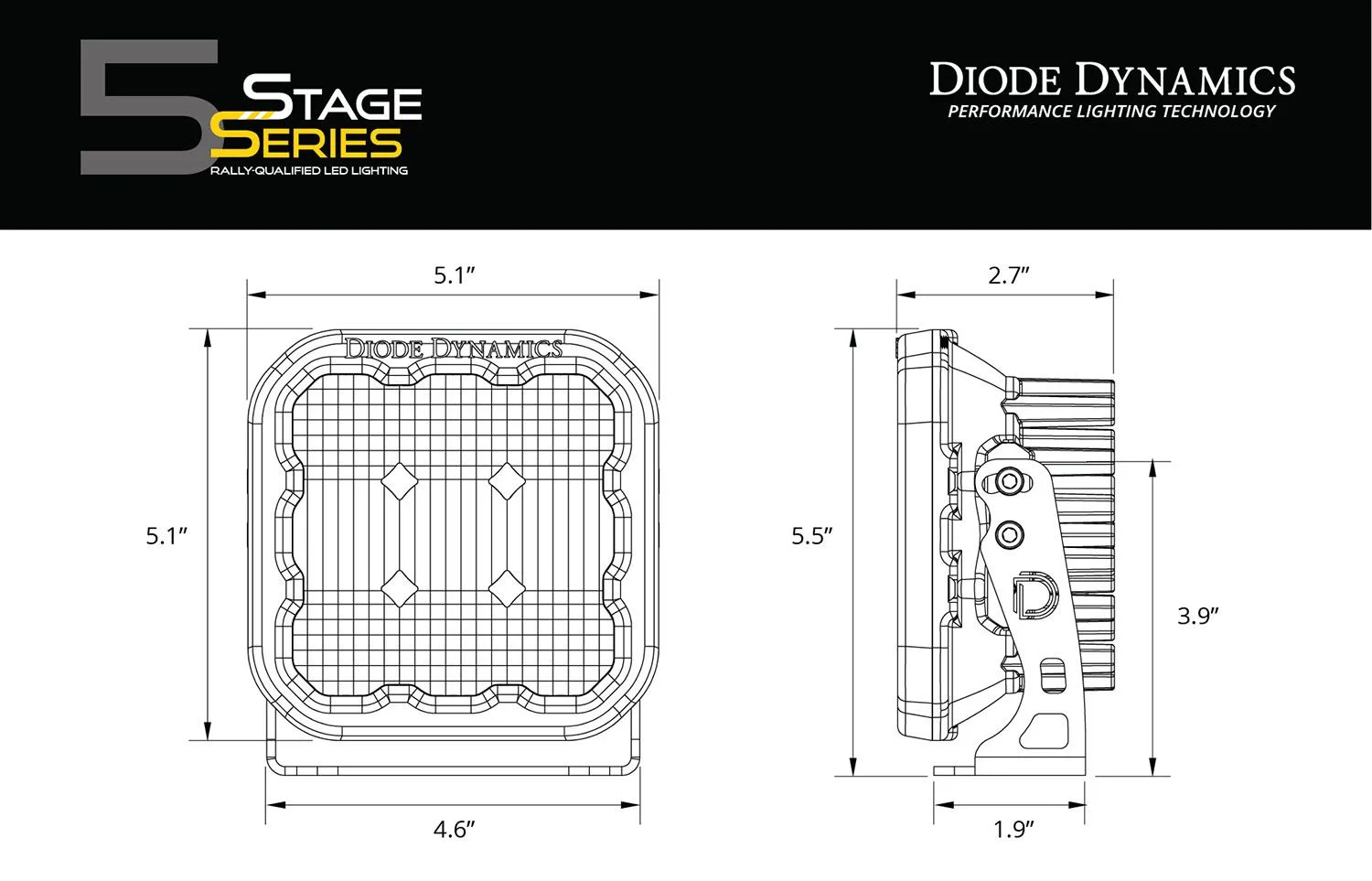 Sport or Pro. Stage Series SS5 LED pods are available at two different power levels. All options use high-intensity LED emitters, and TIR optics for unmatched focus and overall output. The Sport model uses nine high-intensity LEDs for 40 watts of total power. The Pro model steps things up in a big way, with over double the total power at 90 watts. Click the Specifications tab to see more information.