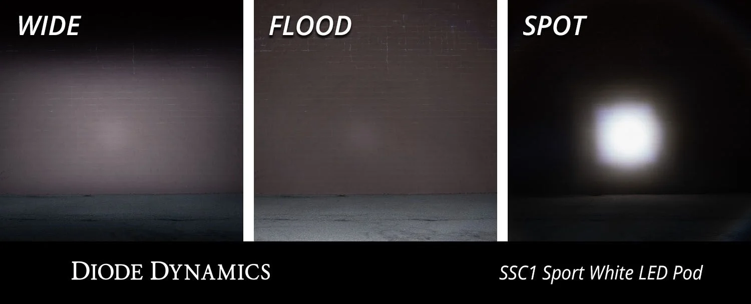 Spot is an unmodified pattern, shining focused light directly from the TIR optic. The result is a highly-focused 7-degree beam of light, perfect for directing light far into the distance. NOTE: The Pro Spot uses a slightly larger emitter which spreads the light output more than the Sport Spot, resulting in a lower candela and lux rating even at a higher power level.