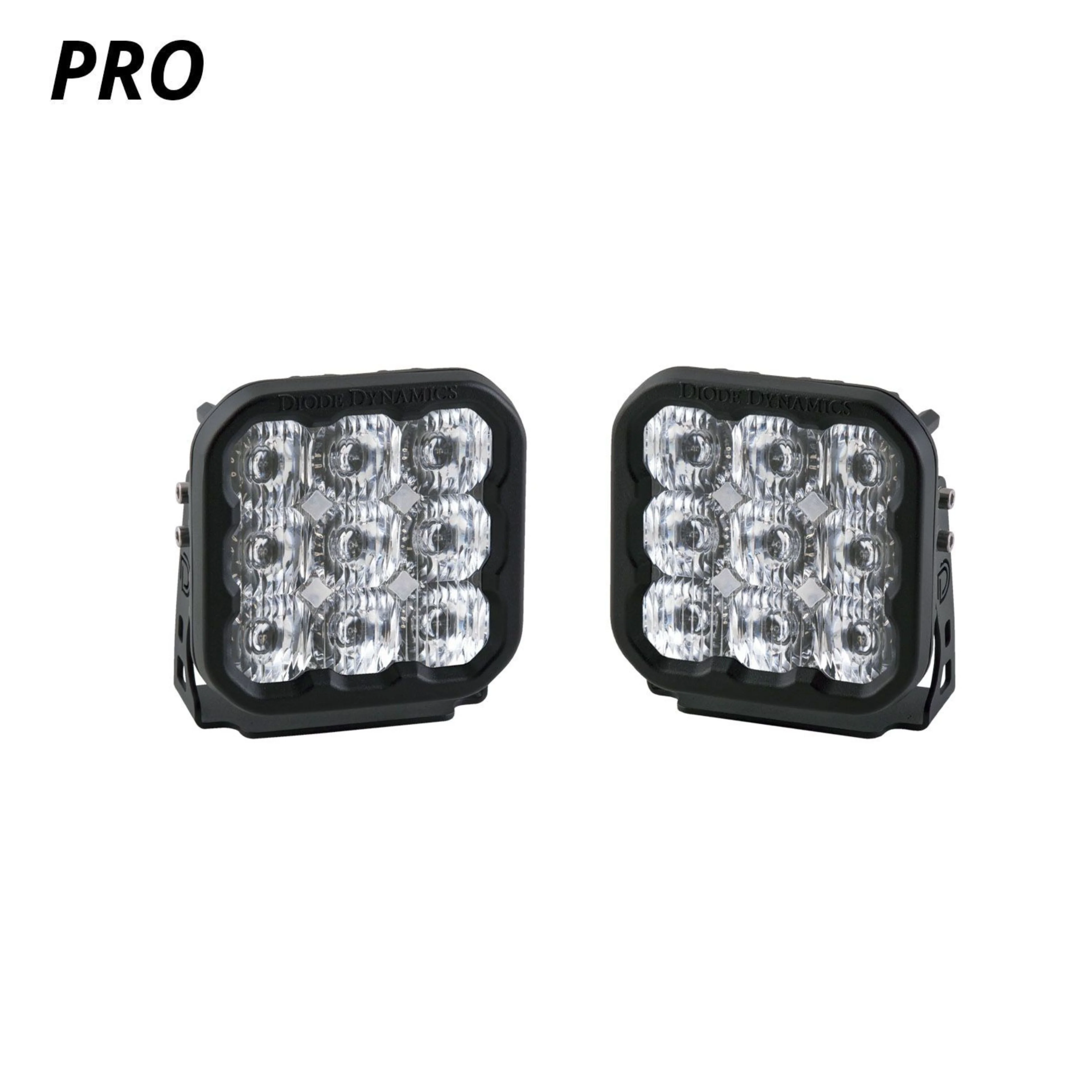 Sport or Pro. Stage Series SS5 LED pods are available at two different power levels. All options use high-intensity LED emitters, and TIR optics for unmatched focus and overall output. The Sport model uses nine high-intensity LEDs for 40 watts of total power. The Pro model steps things up in a big way, with over double the total power at 90 watts. Click the Specifications tab to see more information.
