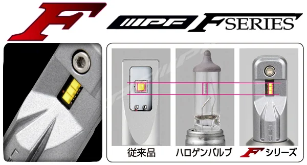 The MP Bulb F series is an advanced all-in-one LED headlamp bulb known for its exceptional light distribution technology. It offers high luminous flux maintenance, sharp cutoff lines, and improved brightness.