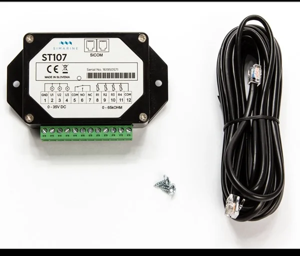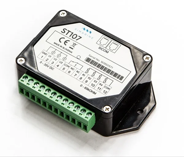 ST107 is a versatile module for monitoring tank and temperature sensors as well as battery voltage. Equipped with four resistance inputs for resistance-type tank level or temperature sensors and three voltage inputs for voltage-type tanks sensors and battery voltages allows wide connection possibilities