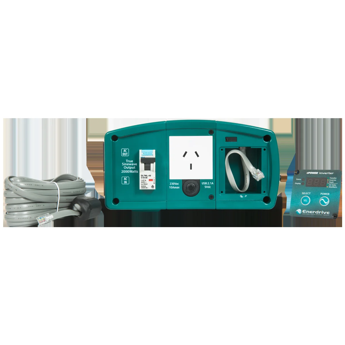 The ePOWER 2600W Inverter with AC Transfer and Safety Switch is part of a range of affordable, high-quality, professional-grade inverters from Enerdrive. Utilizing the latest power conversion technology, ePOWER inverters provide clean, energy-efficient true sine wave AC power from your DC supply.